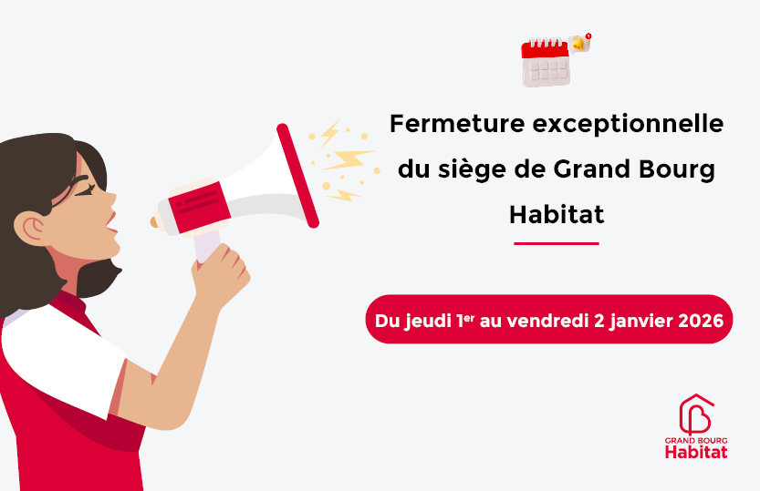 Le siège de Grand Bourg Habitat sera fermé du jeudi 1er au vendredi 2 janvier 2026.